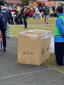 当日は、コース各所にダンボールで作った「ゴミ箱」を当社より提供させていただきました。